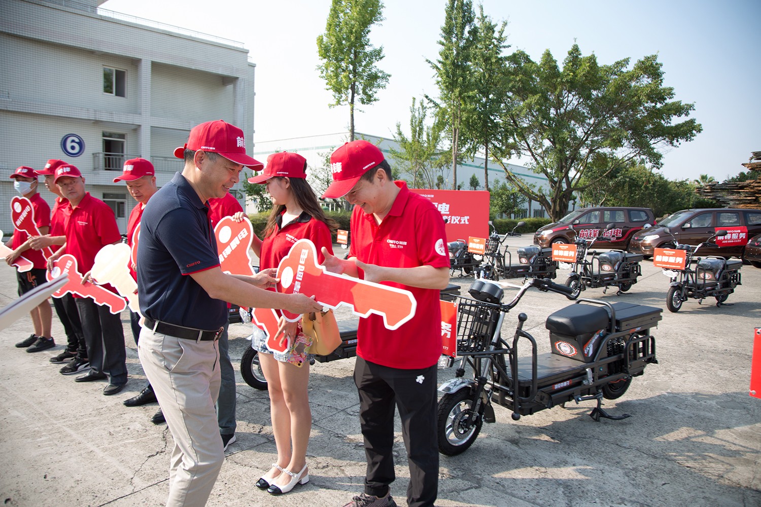 為獎(jiǎng)勵(lì)取得卓越成績的經(jīng)銷商,更為了加強(qiáng)服務(wù)品質(zhì),提升終端市場競爭能力,拿下全年銷售目標(biāo)?;顒?dòng)現(xiàn)場,董事長楊鋼為優(yōu)秀經(jīng)銷商和業(yè)務(wù)人員頒發(fā)了前鋒服務(wù)車“金鑰匙”,開啟了前鋒售后服務(wù)形象的全面統(tǒng)一,服務(wù)質(zhì)量全面提升的新征程。